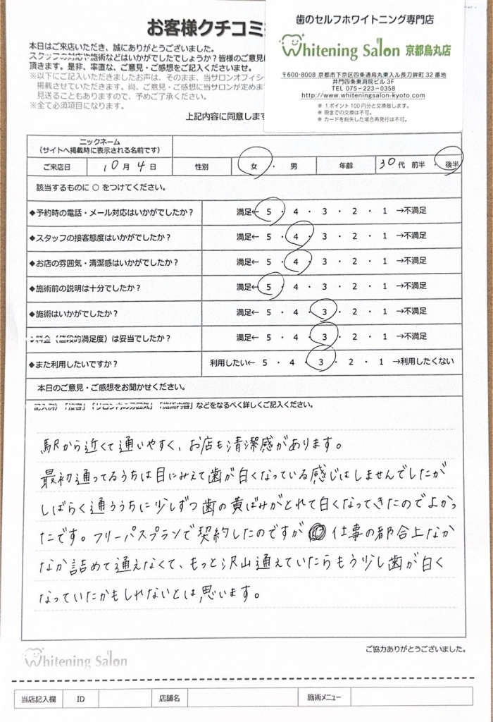 しばらく通ううちに少しづづ歯の黄ばみが取れて白くなってきたのでよかっ
