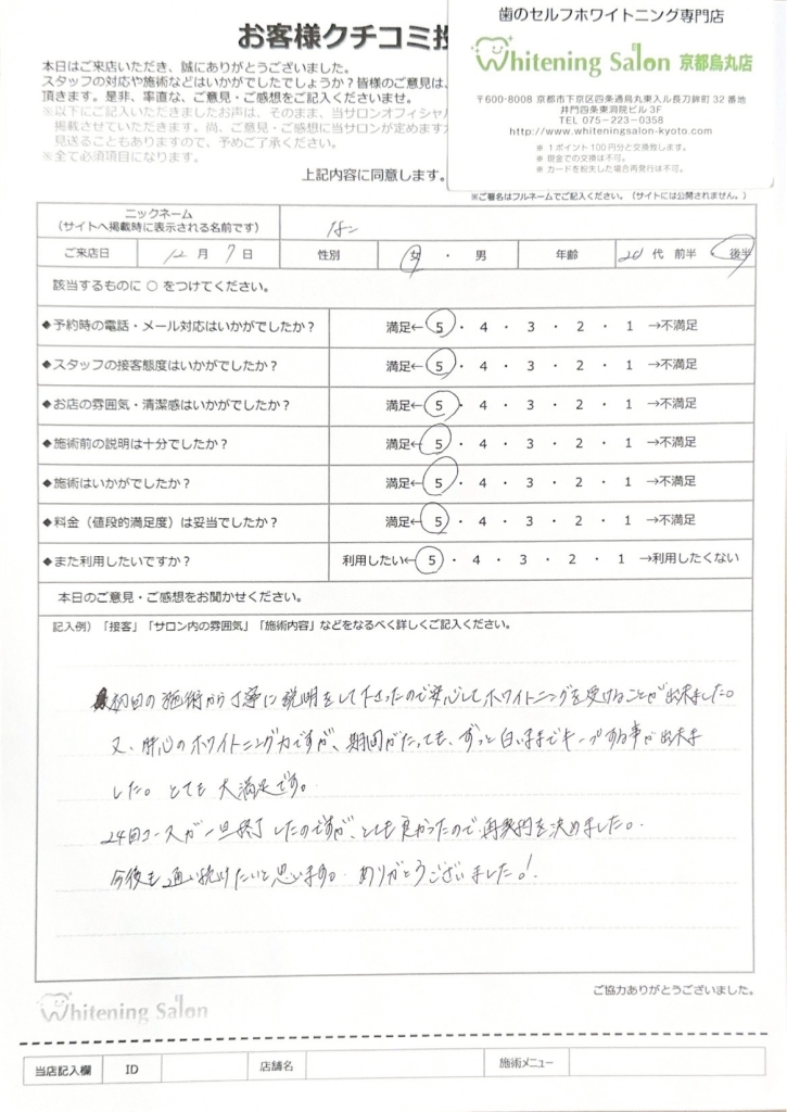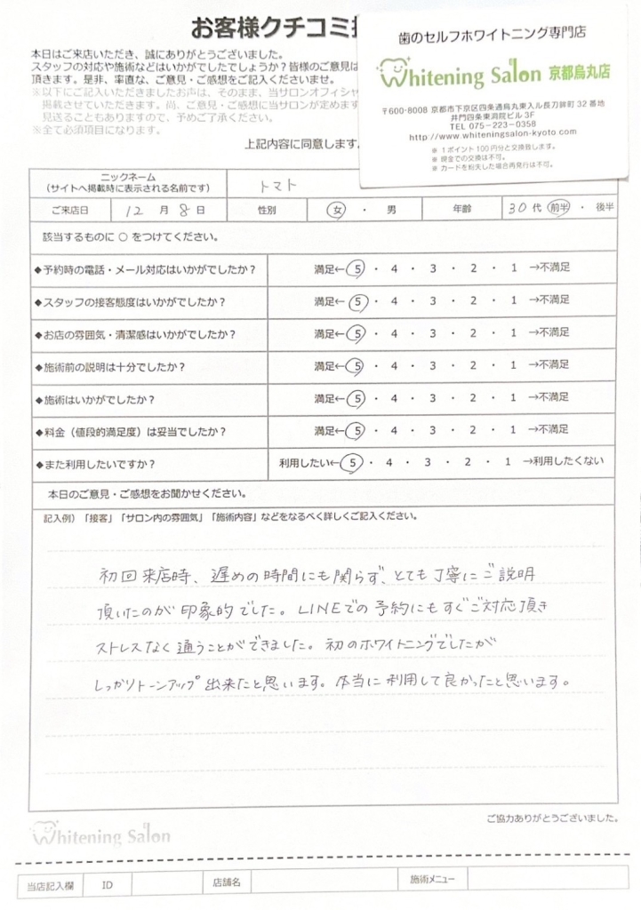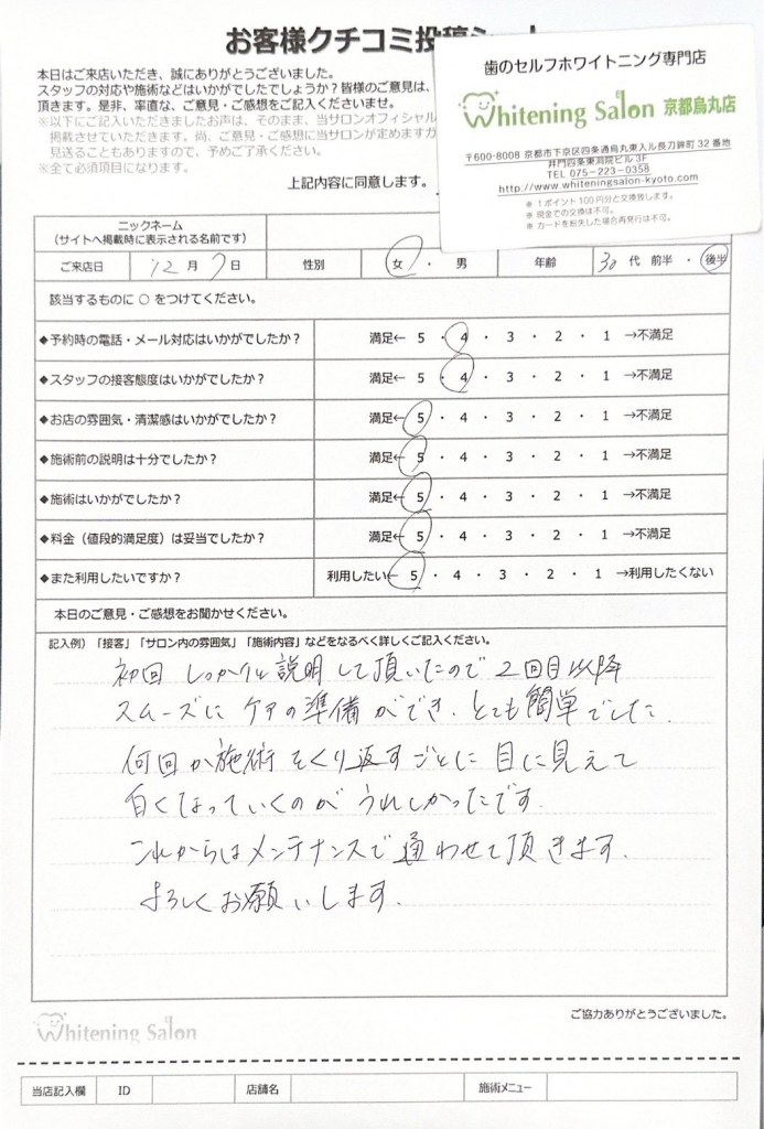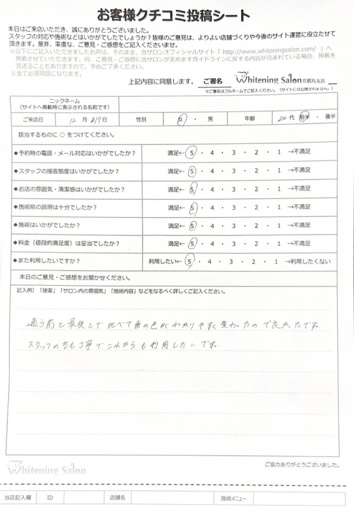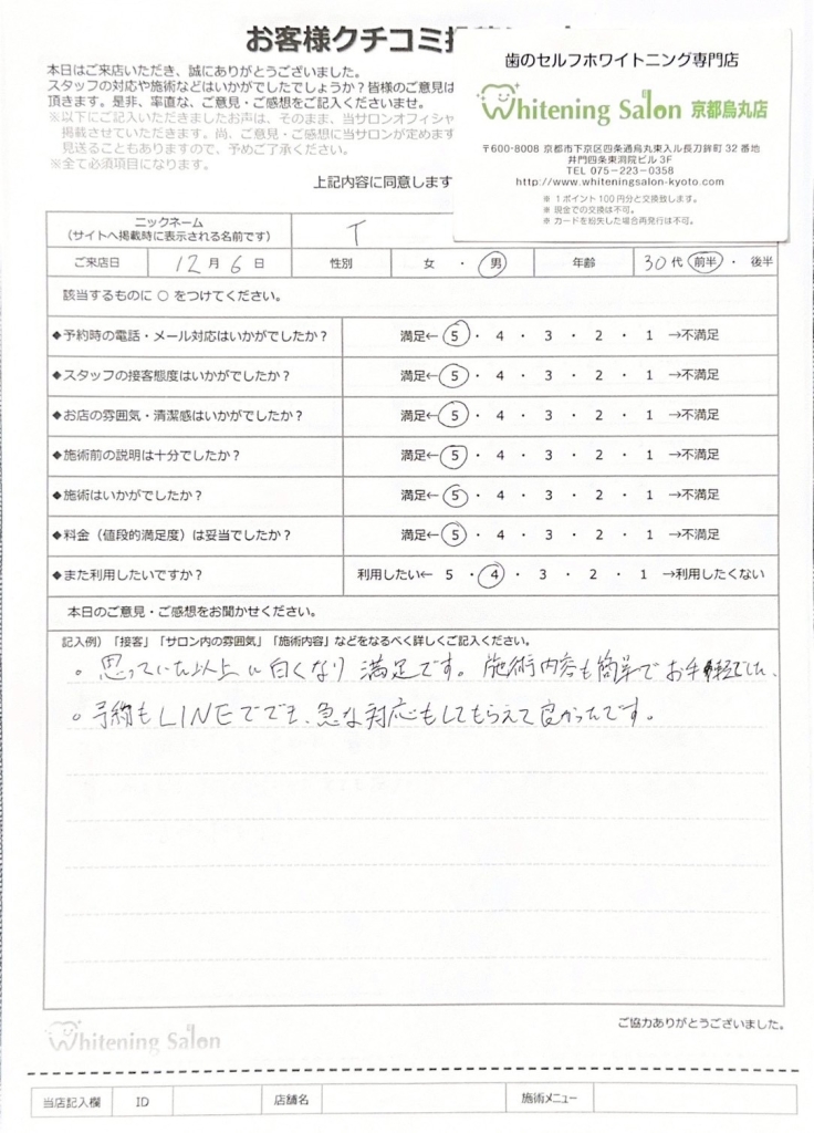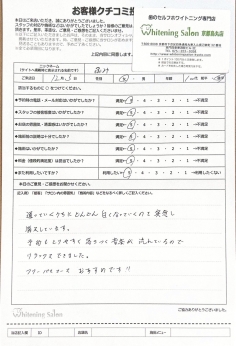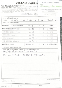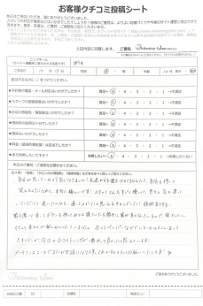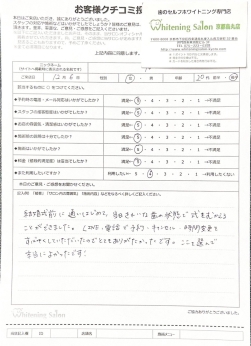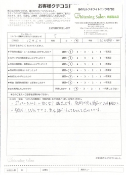 - 思っていた以上に白くなり満足です。施術内容も簡半でお手軽でした
