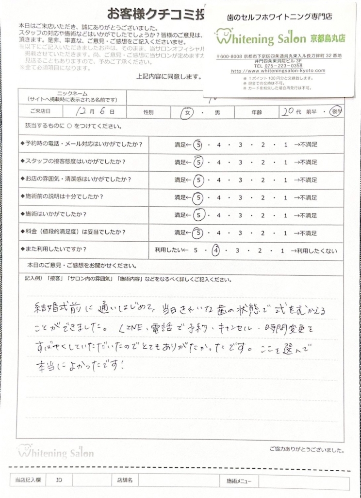 結式前に通いはじめて、当日きれいな歯の状態で式をむかえることができました。
