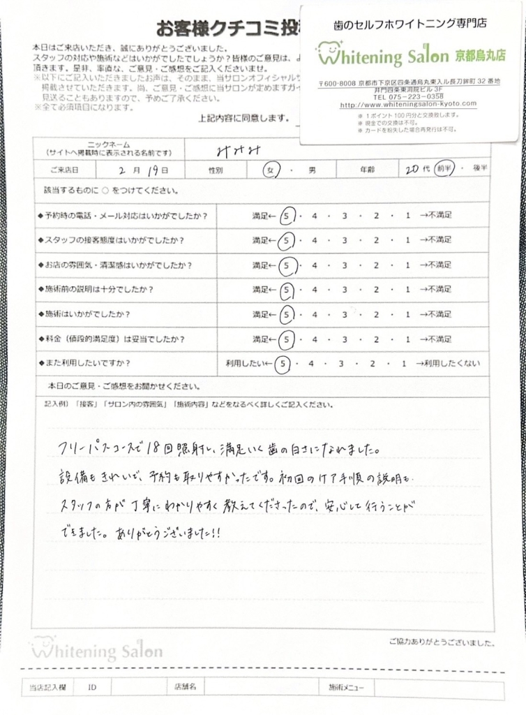 フリーパスコースで18回照射し、満足いく歯の白さになれました。